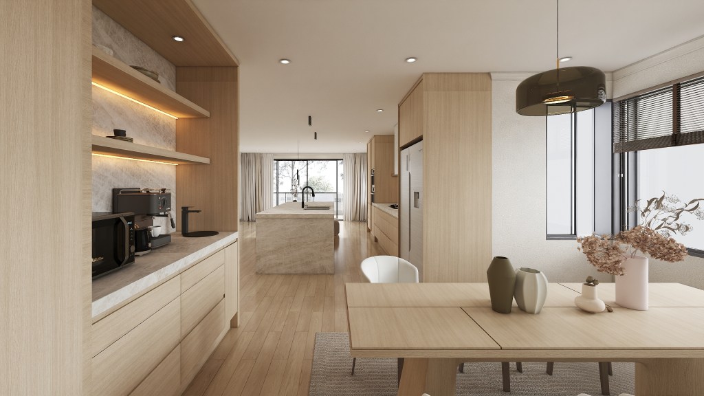This residential interior project blends modern design with French-inspired elements to create a timeless and elegant home. Featuring a warm timber look and natural colour palette, the space exudes comfort and sophistication. Pops of black throughout add depth and contrast, creating a dynamic yet harmonious feel. By collaborating closely with the client, we’ve crafted a design that perfectly reflects their dream lifestyle, combining functionality with style in every corner.